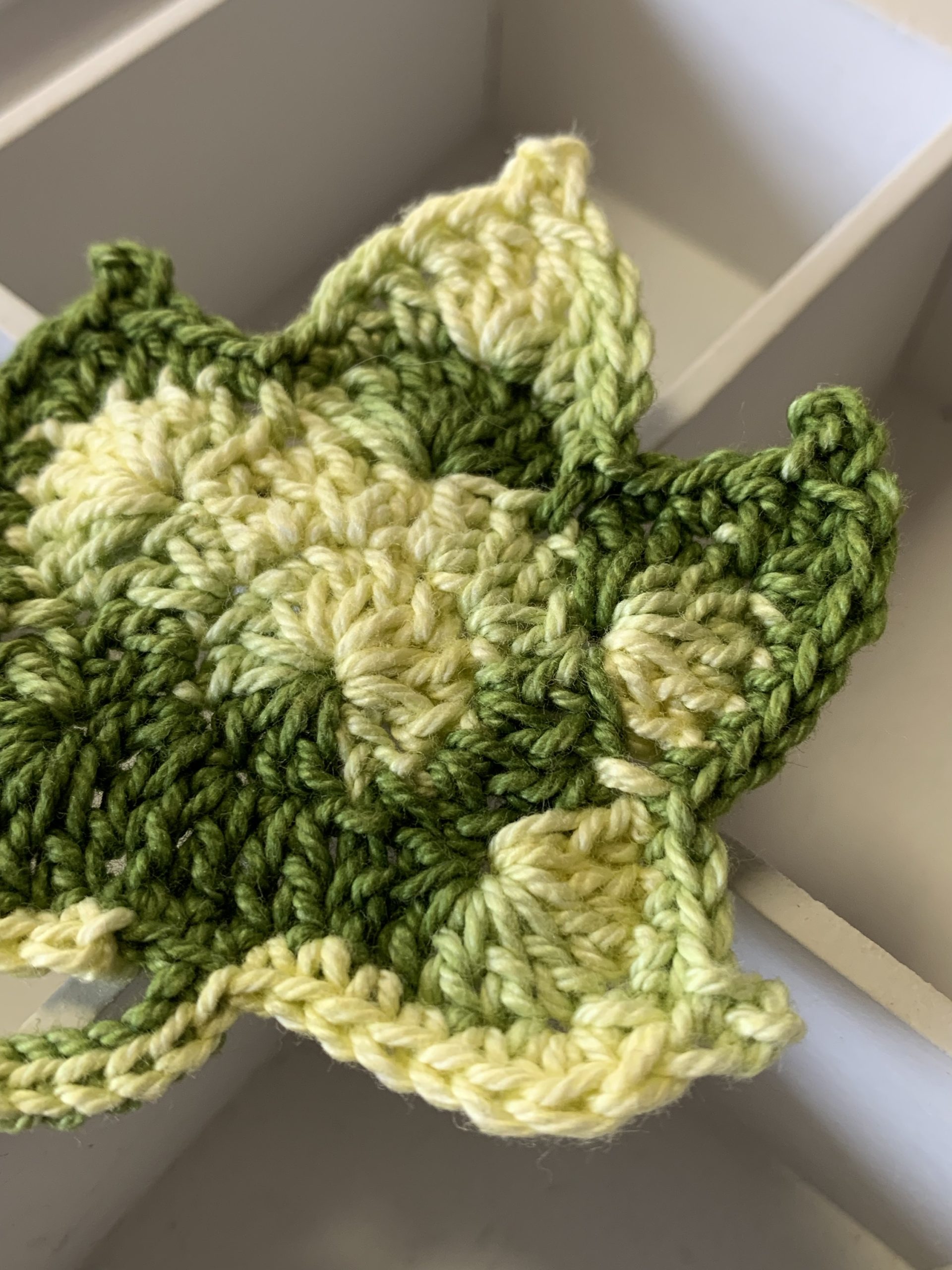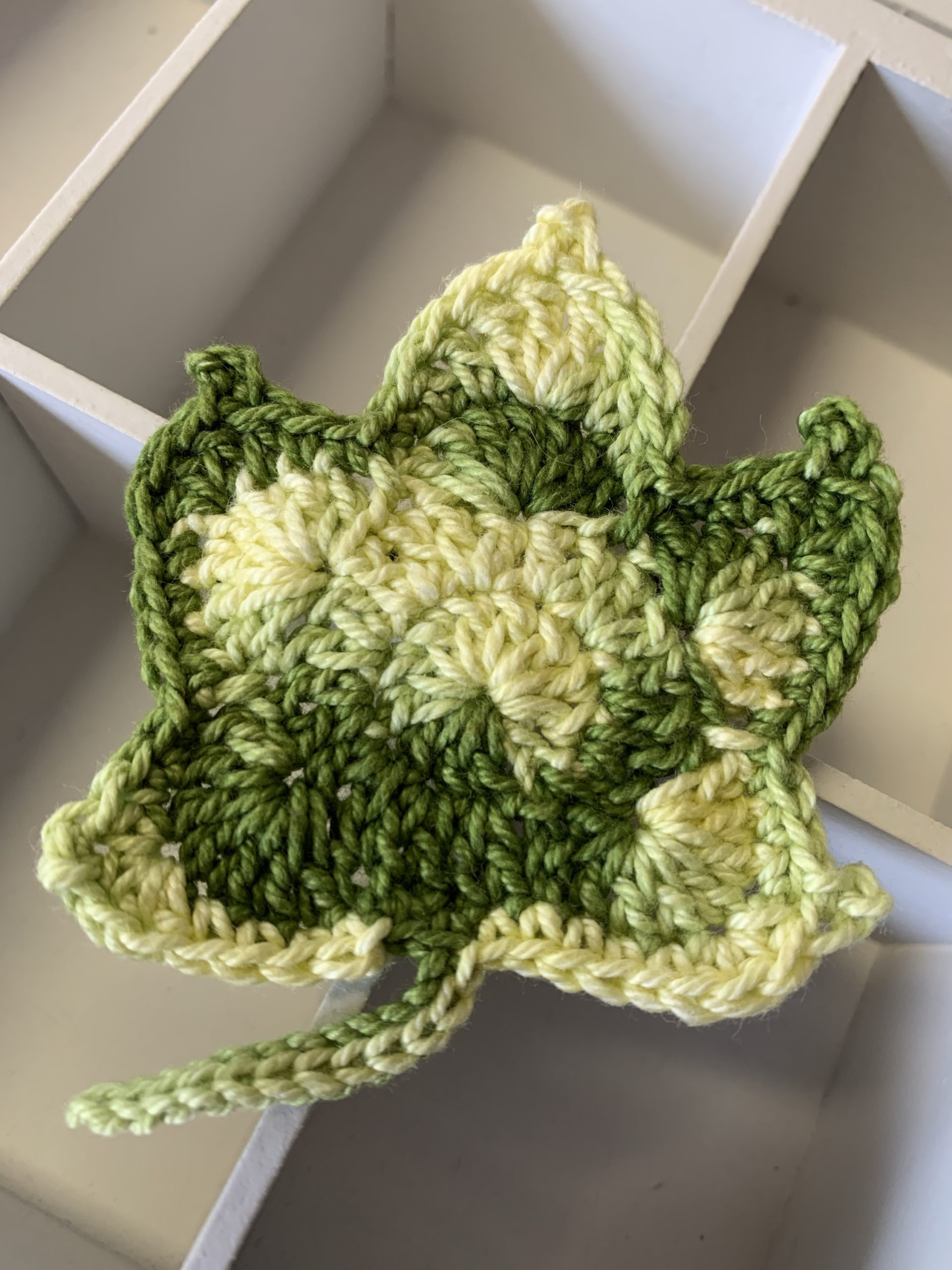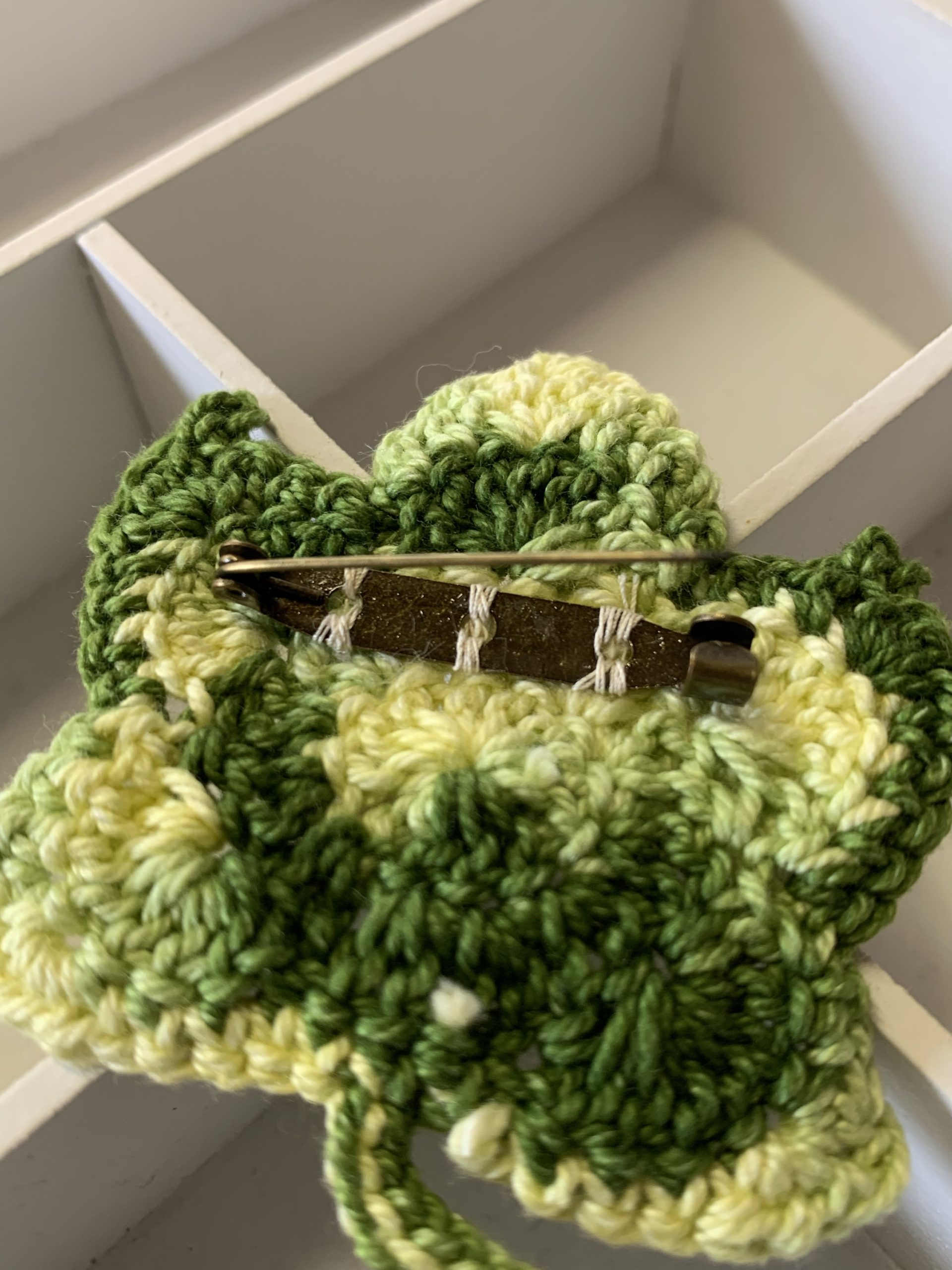Broche hecha a mano de ganchillo con hilo de algodón. Tiene forma de hoja de arce 🍁 y mide aprox. 6 cm.